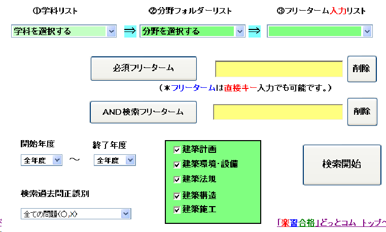 キーワード・年度・学科・正誤を詳細に指定して、検索できますよ。