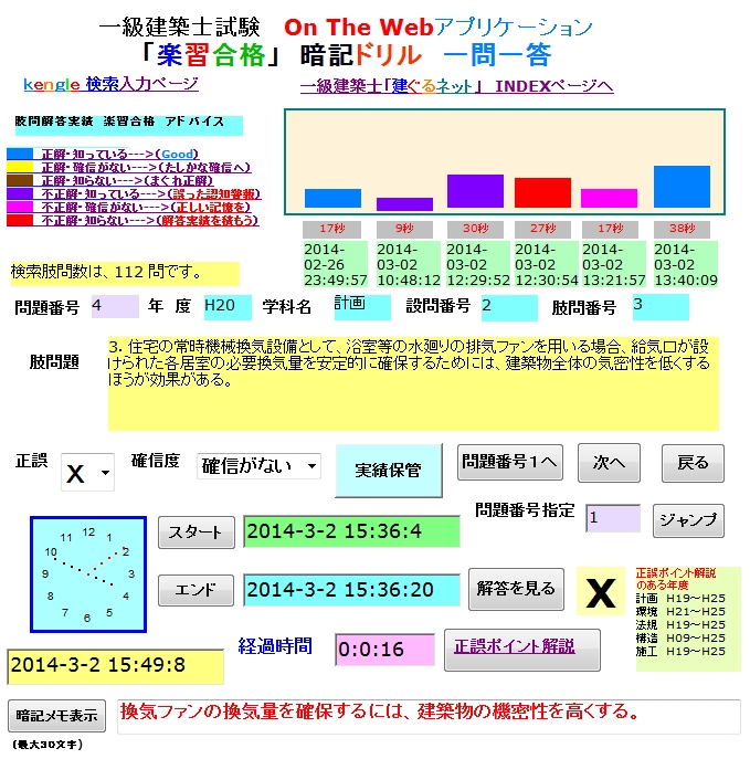 「解答時間」「解答日付と時間」「暗記メモ」「出題傾向グラフ」